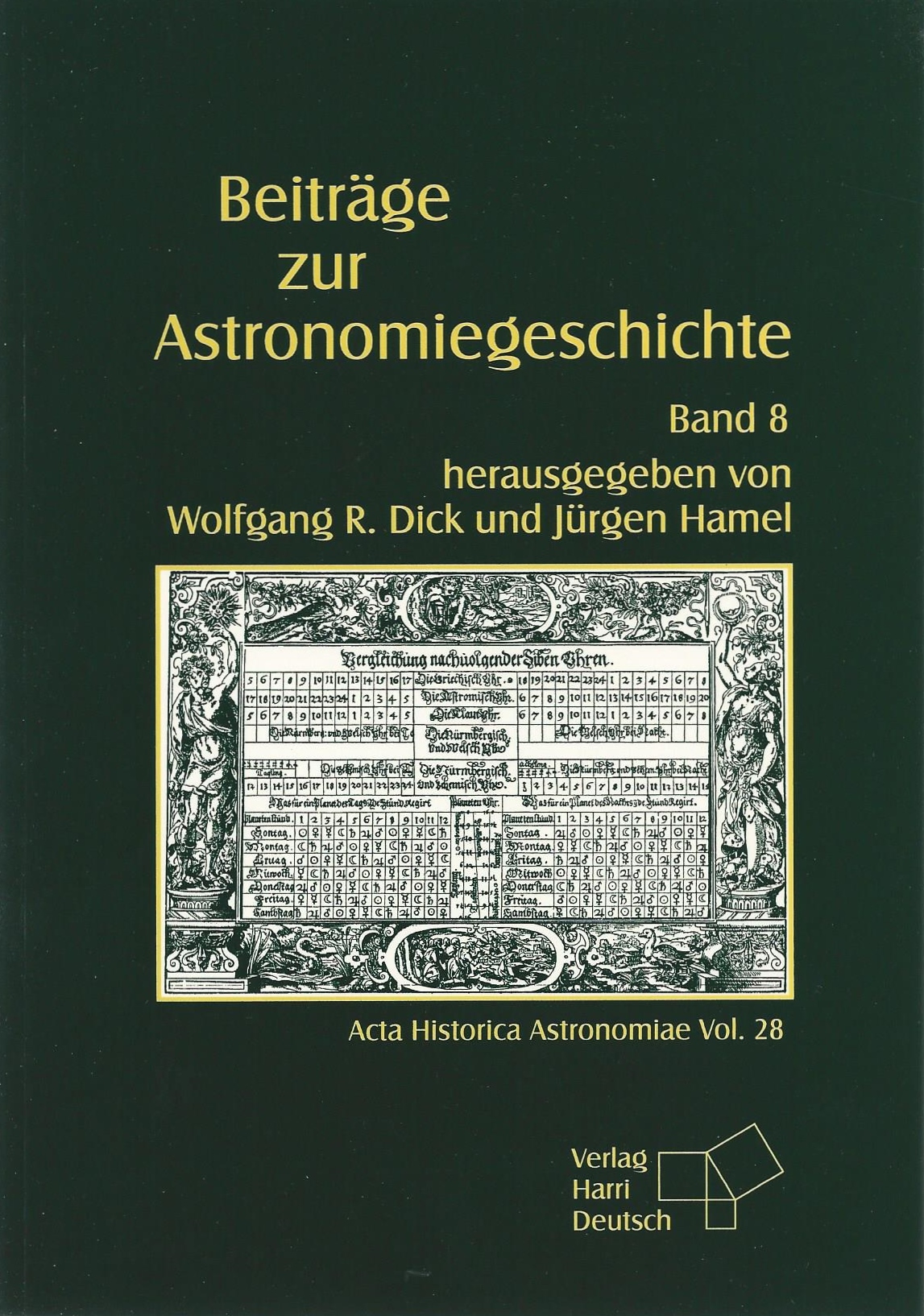 Beiträge zur Astronomiegeschichte, Bd. 8. Hrsg. v. Wolfgang R. Dick u. Jürgen Hamel. (Acta Historica Astronomiae ; 28). Frankfurt am Main : Deutsch, 2006, 253 S., ISBN 978-3-8171-1771-0, zahlr. Abb., 15 x 21 cm, kartoniert EUR 24,80